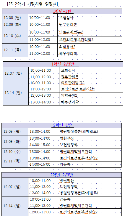 자료실 강의자료 강의시간표 Home자료실강의자료 강의자료 2025학년도 1, 2학년 2학기 기말고사 시험 일정표 카테고리 : | 작성자 : 학과관리자 | 작성일 : 2025.12.30 | 조회수 : 12 첨부파일 2025학년도 1, 2학년 2학기 기말고사 시험 일정표.hwp 2025학년도 1, 2학년 2학기 기말고사 시험 일정표.png 목록 이전글 이전 글이 없습니다. 다음글 2025학년도 1, 2학년 2학기 중간고사 시험 일정표